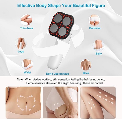 دکمه پاور را برای روشن شدن طولانی مدت فشار دهید، عملکرد ساده و راحتی دارد. طراحی قابل حمل و دستی، بیسیم، جمع و جور، راحت، میتوانید از این دستگاه فرم دهنده بدن در خانه یا محل کار در هر زمان و هر مکان استفاده کنید.